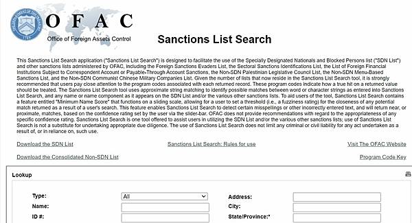 ▲想看看自己或受款人會不會中OFAC名單嗎,進入他們的搜尋網站在NAME上輸入英文名稱,就能搜尋到囉。查詢網址:https://sanctionssearch.ofac.treas.gov/