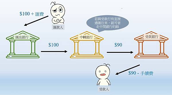 閱讀過上一篇的文章後我們都知道,匯款金額出去可能被中間銀行扣除手續費,所以建議找有與受款行直接通匯的匯款銀行來匯錢,若沒有則至少盡力減少中轉行的費用和次數,因此你若能提供與受款銀行有合作的中間銀行(intermediary bank)的SWIFT代碼資訊,則可協助自己將款項有效率地以最短路徑匯款,減少中間行扣除費用的金額與次數。最慘的狀況是中間還要透過兩家以上的中轉銀行,這樣錢會被扣超多的。
