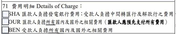 可以看到匯款單上顯示出三種費用標準-SHA/OUR/BEN,通常第一眼看到這個一定覺得一頭霧水,我也不意外,以下簡單說明: