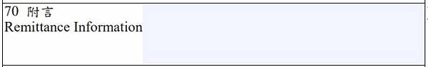 也就是要留言給受款人的備註,一般公司會打上貨款的編號、個人會打上匯款用途,這不是必要的欄位,全看匯款人要不要填寫,同樣也是英文格式。近期很多人開立海外券商帳戶,券商也要求一定要將個人的帳戶資訊,包含券戶名稱、券戶帳號,寫在備註欄之中,這樣券商才知道這筆錢是要撥進誰的證券戶裏頭,切記。