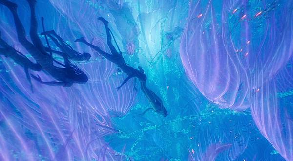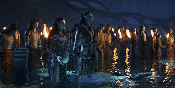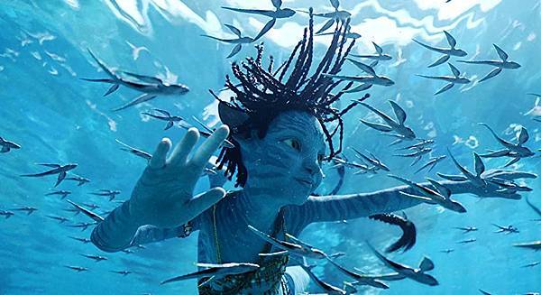 有別於之前探索潘朵拉星球的叢林秘境,續集的重點在於著墨納美人的水中部落及文化。主角一行人從森林逃到與世隔絕的環礁境地避難,因而遇上「礁人族」Metkayina,電影藉此展現了不同部落的特色,更擴充了這個星球的多元性和世界觀。同時也間接地為往後的故事架構鋪路,所以與其說是一部電影,倒不如說是一場驚心動魄的世界探索,那穿透人心與視覺的世界觀冒險,會讓人流連忘返。而電影在鋪陳時的節奏上,是慢條斯理且扎實地將每一幕畫面呈現給觀眾,因為瞠目結舌故不會顯得太拖沓,能感受導演的真誠。